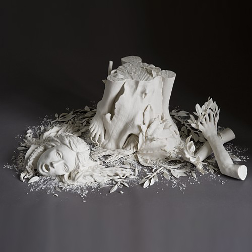 マクドウェルはそんなダフネの声にならない悲鳴を、破壊された像としてあらわしているかのようだ。 まぁアーティスト・ステートメントを読むと、マクドウェルはどちらかというと「人間と自然の共存の中で起こる軋轢」といったテーマに関心が強いようなので、植物と化す人間の姿を捉えるほうに重きが置かれているかもしれない。とはいってもやはり、破壊された身体と苦痛にゆがむ表情、これはやはり神話の理不尽に対するダフネの絶望だと思うのよな。