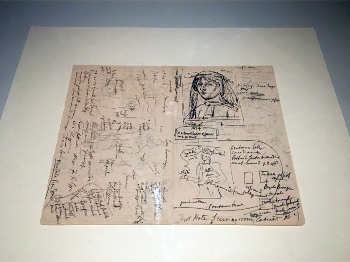 展示室では、アントネッロの代表的な絵画が贅沢に展示されているその横に、その作品に関連するカヴァルカセッレのノートが展示されている。この美術史家はヨーロッパじゅうを歩いてまわり、主要なコレクションを網羅して、さまざまな作品を自分の目で観て、絵の主要な構成を記録するためスケッチをし、その作品の帰属をめぐる思考の軌跡までもこまごまとメモして残しているのだ。