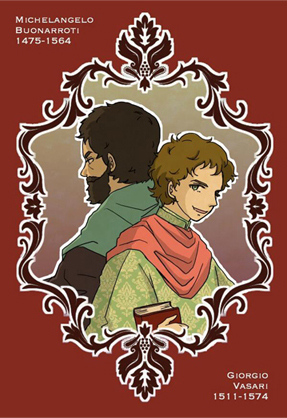 ミケランジェロとヴァザーリの年齢差意識したらこんな感じか。